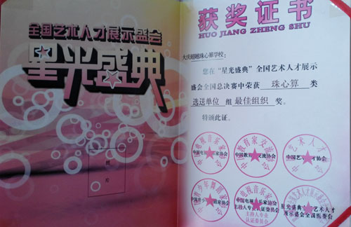 获奖证书-大庆超越智能珠心算_大庆智能珠心算_大庆珠心算_超越珠心算_珠心算_大庆少儿学校_大庆算数_大庆幼儿教育