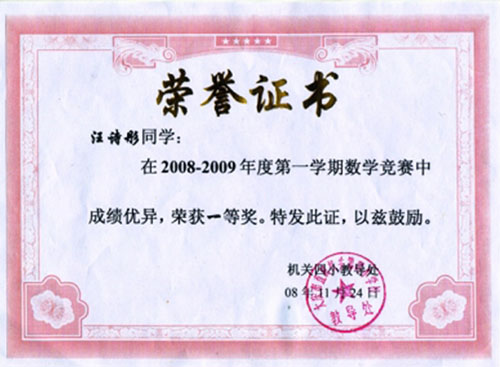 汪诗彤荣誉证书-大庆超越智能珠心算_大庆智能珠心算_大庆珠心算_超越珠心算_珠心算_大庆少儿学校_大庆算数_大庆幼儿教育