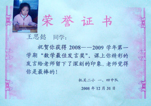 王思懿荣誉证书-大庆超越智能珠心算_大庆智能珠心算_大庆珠心算_超越珠心算_珠心算_大庆少儿学校_大庆算数_大庆幼儿教育